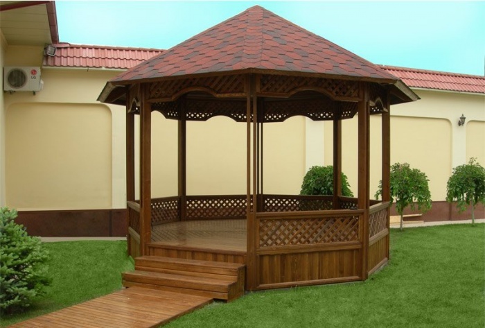 Восьмигранная беседка устанавливается за несколько дней. Рассмотрим, что собой представляет эта садовая постройка.