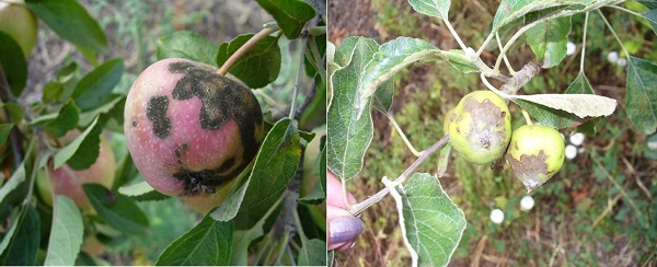 Плоды яблони, пораженные ожогом (фото)