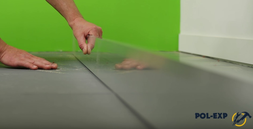 Далее нужно продумать, как лучше зафиксировать полотно к полу. Если комната не слишком большая, до 20 м2, можно применить двусторонний скотч. На площади до 12 м2 скотч крепится только по периметру, от 12 до 20 м2 – по периметру и параллельными полосами через каждый метр. На большой площади рекомендуется использовать специальный клей, например, Момент универсальный, Homakoll, FORBO Eurocol 525.