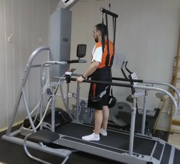 - Дорожки с системой поддержки веса (БВС — Беговая Дорожка с Разгрузкой Веса Тела): Это золотой стандарт в неврологической и ортопедической реабилитации. Система представляет собой специальную подвеску (корсет), который поддерживает часть веса пациента, позволяя ему ходить или бежать с значительно уменьшенной нагрузкой на суставы и позвоночник. Это незаменимо для ранней реабилитации после инсульта, травм спинного мозга или эндопротезирования суставов.
