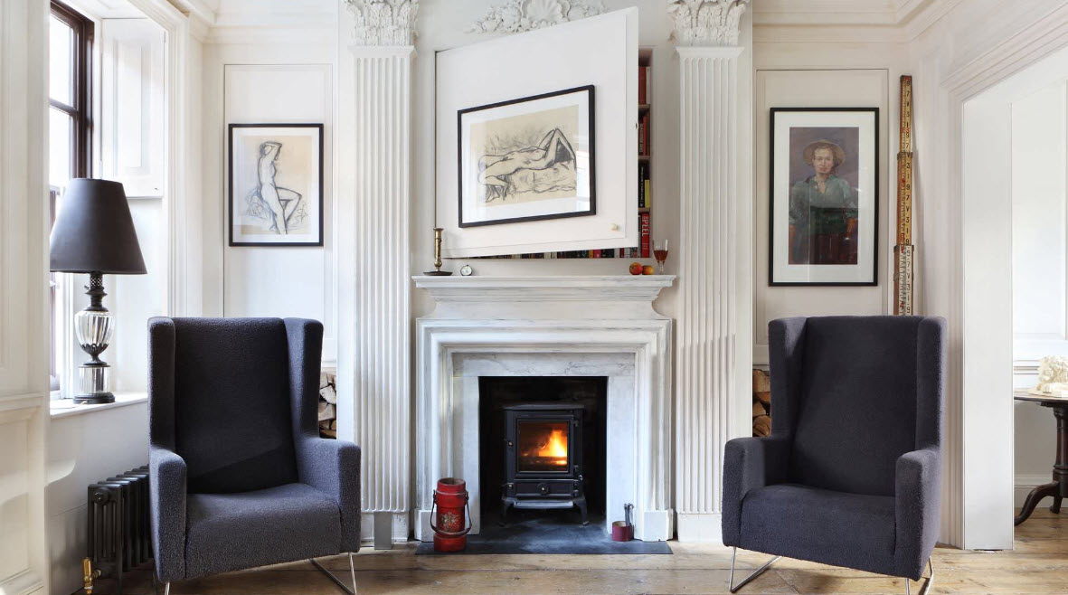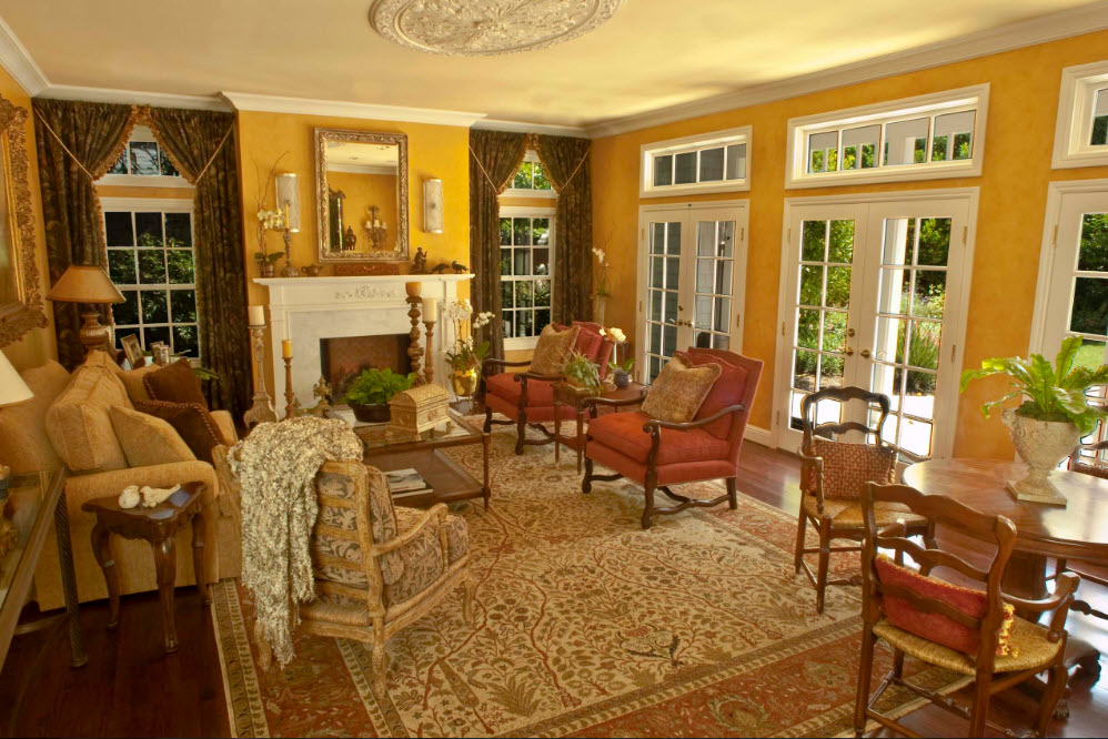 Роскошь интерьера подчеркнет камин, оформленный в духе лучших классических традиций, с позолоченными и бронзовыми элементами или украшенный королевскими орнаментами.