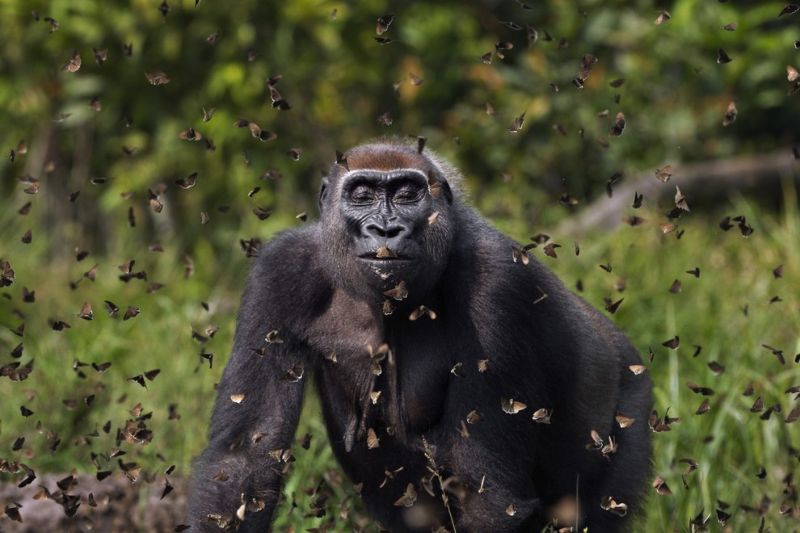 Посмотреть на горилл, шимпанзе и буйволов можно в национальном заповеднике Дзанга-Санга, который был основан в 1990 году. Площадь его 6866 кв. километров, и почти 80% этой территории покрыты густыми тропическими лесами, в которых приматы и обитают. Также тут водятся дикие буйволы и настоящие антилопы.