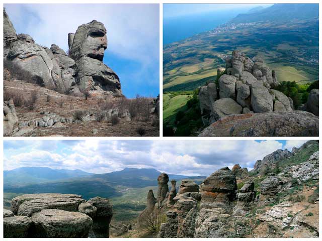 Посещая достопримечательности Крыма не обойдите стороной причудливые скалы под горой Демерджи, рядом с Алуштой. Подъем на гору средней сложности, иногда встречаются крутые участки. Советую рядом еще древнюю крепость Фуна. Именно в этих местах снимали некоторые эпизоды «Кавказской пленницы», например здесь расположено дерево, с которого упал герой Юрия Никулина (он и вправду упал с него).