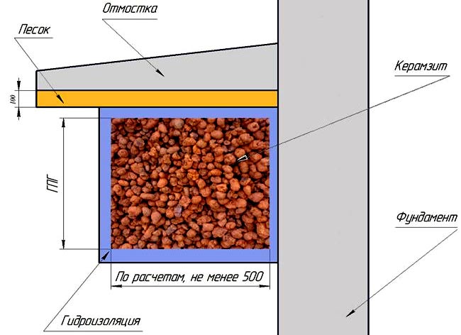 2. Засыпают слой керамзита, толщиной не менее 10см.