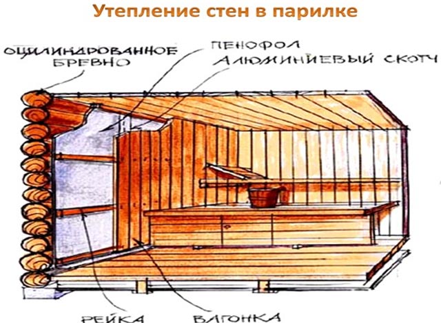 Утепление стен бани изнутри
