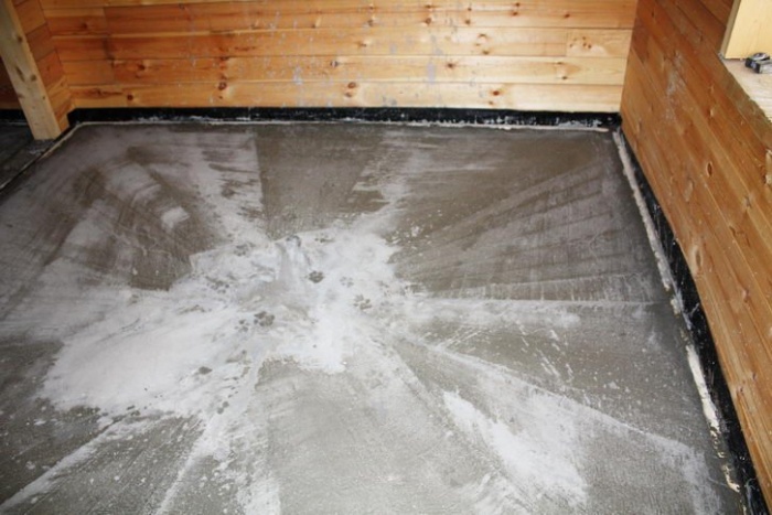 При устройстве деревянного пола, необходимо застелить полностью весь бетон рубероидом и смонтировать обрешётку. На обрешётку пола укладывается доска. Если же отделка пола будет производиться с помощью керамической плитки, то перед укладкой необходимо обработать бетон мастикой.