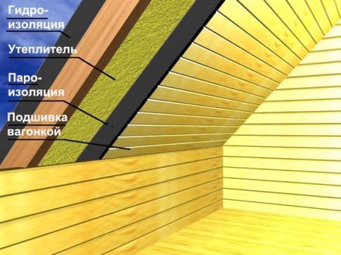 Вполне допустимы и такие виды отделки, как деревянная и пластиковая вагонка, реечный или натяжной потолок. Они не боятся влаги, в них можно встроить точечные светильники, а пространство между перекрытием и облицовкой заполнить теплоизоляцией.