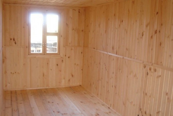 Далее приступает к отделке внутреннего пространства вагонкой.