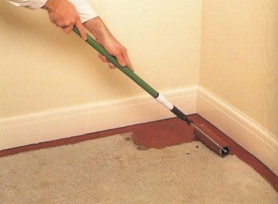 Перед тем как провести какие-либо работы необходимо осмотреть бетонный пол, чтобы убедиться в отсутствии на нем пятен битума, лакокрасочных и горюче-смазочных материалов и т.д. При наличии следов указанных жидкостей необходимо удалить их при помощи моющих средств.