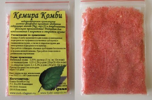 Можно использовать уже готовые органические удобрения. Например, подойдет «Кемира Комби». Это розовый порошок, который необходимо растворить в воде. Для одного литра воды будет достаточно 0,1-0,2 г удобрения, то есть порошок, насыпанный на кончик чайной ложки. Эту жидкость нужно перелить в бутылку с пульверизатором и распылять ее утром на рассаду, попадая не только на верхние, но и на нижние листики.