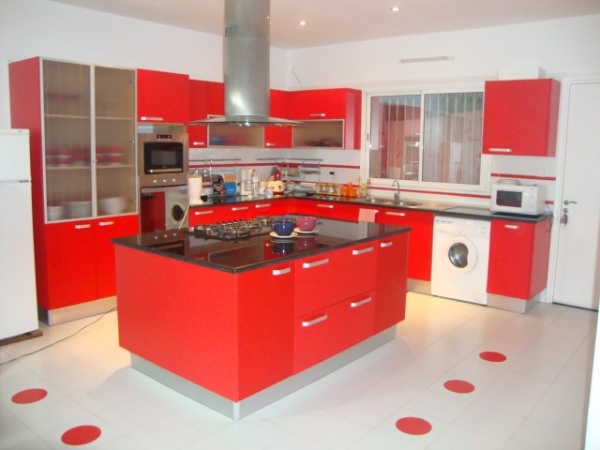 Потому оптимальный выбор – кухня в красных тонах, дополненная черным или, наоборот, в современном минималистичном стиле.
