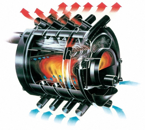 Как уже отмечалось в начале статьи, одной из особенностей конструкции «булерьяна» можно назвать специальные трубки, утопленные в топочную камеру на две трети своего диаметра. Это и обеспечивает быстрый обогрев помещения.