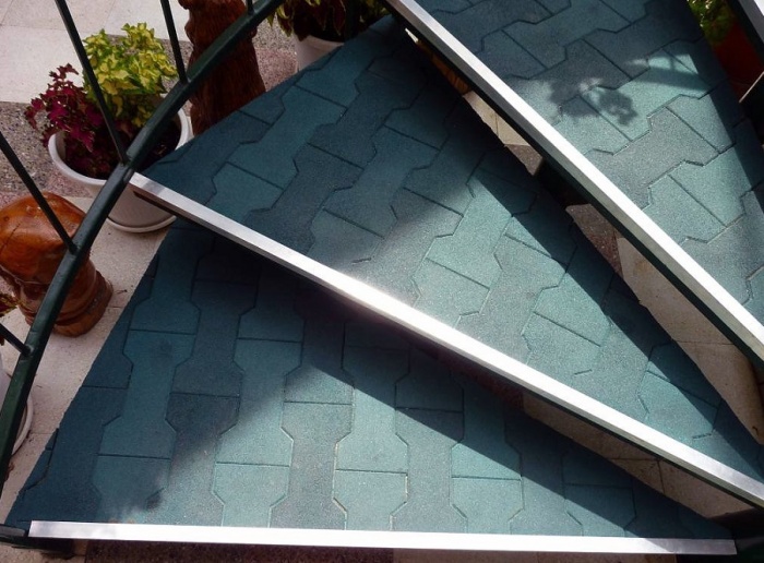 - Толстый слой резины заглушает звуки. Возможно, для уличной лестницы это не так актуально, но есть у покрытия и такое свойство.