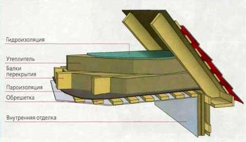 Схема утепления покрытия мансарды очень похожа на теплоизоляцию деревянного перекрытия: