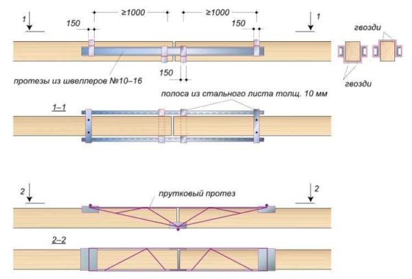Слева показано устройство дополнительной обрешетки, когда высоты балок не хватает