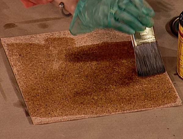 Производители предоставляют широкий выбор отделки из экологичного материала. Основные различия изделий заключаются в фактуре верхнего слоя. Поверхность может напоминать мелкие крупинки как у мрамора или пластинки. Для реализации различных дизайнерских проектов можно использовать светло-коричневые, золотисто-песочные или мягкие охристые оттенки.