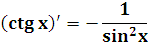 Функция y Производная функции y y»1 C (постоянная величина) C» = 02 x x» = 13 x n (n — любое число) (x n)» = nx n-1x 2 (n = 2) (x 2)» = 2x 4 sin x (sin x)» = cosxcos x (cos x)» = — sin xtg x ctg x 5 arcsin x arccos x arctg x arcctg x 4 a x e x 5 log ax ln x (a = e)