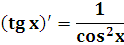 производная от функции в точке равна тангенсу угла между осью OX и касательной к графику функции в данной точке.