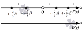 x = — 4 — 2 3 3 , x = 0 , x = 4 + 2 3 3 , тогда отсюда точки максимума имеют значени x = — 4 + 2 3 3 , x = 4 — 2 3 3