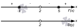 y » (- 2) = 2 · (x + 1) · (x — 5) (x — 2) 2 x = — 2 = 2 · (- 2 + 1) · (- 2 — 5) (- 2 — 2) 2 = 2 · 7 16 = 7 8 > 0 , значит, интервал — ∞ ; — 1 имеет положительную производную. Аналогичным образом получаем, что