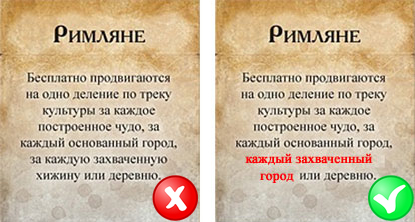 В тексте же ошибочно указано, что римляне получают бонус при захвате хижин, а не чужих городов. Очепятка не критичная, но желательно иметь её в виду, иначе римляне могут очень резво устремиться к культурной победе. Хижин-то в начале игры хватает, а до города противника ещё поди доберись.
