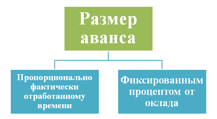 Размер аванса, подлежащего выплате работнику, может рассчитываться одним из следующих способов: