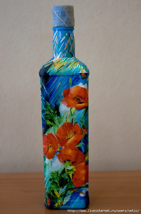 Используя эту технику, вы с легкостью превратите самую обычную бутылку в прекрасный подарок или оригинальный элемент декора. К тому же, этот творческий процесс достаточно несложный!