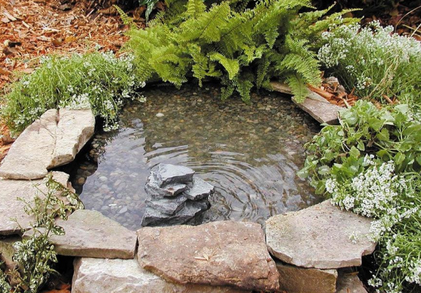Не стоит перегружать мини-пруд декоративными элементами. Он и так красив. Даже в стиле минимализма он остаётся великолепным местом, привлекающим взгляды