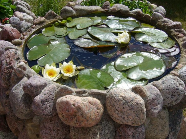 Камни можно выкладывать в несколько рядов, размещая внизу округлые и крупные валуны, а сверху — камушки поменьше. Даже дно мини-пруда можно украсить симпатичной некрупной галькой овальной формы, взятой из реки или привезенной с моря. А вот песок с гравием для декорирования дна лучше не использовать, потому что вода от них может стать мутной.
