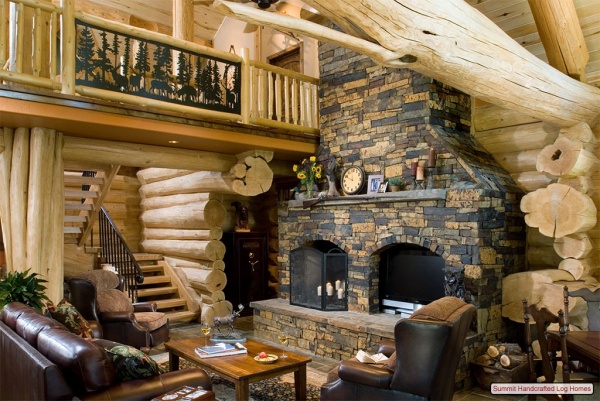 В горных местностях в конструкции дома и в интерьере основательность подчеркивалась при помощи камня.