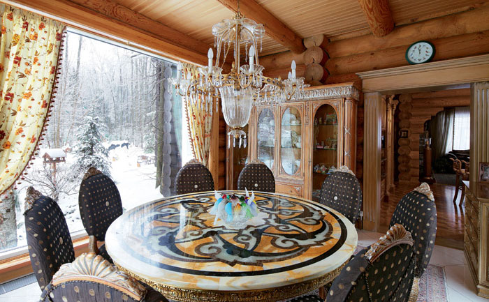 Интерьер шале темнее по цвету, мебель массивнее и увереннее. Здесь мы оставляем поверхность породы максимально натуральной, например, для украшения потолка подойдут грубо обработанные бревна.