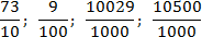 Числитель третьей дроби: 10029. Сдвигаем десятичную точку на три знака (т.к. в знаменателе стоит 1000) — получим 10,029.