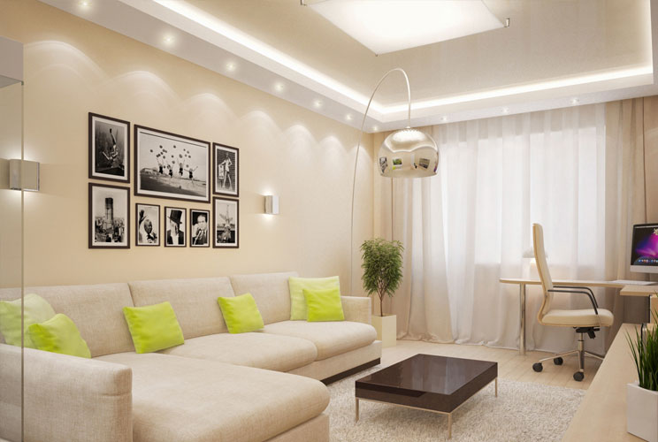 Попробуйте провести зонирование помещения путём установки внутри комнат перегородок, выделяя кабинет, спальню, и зону отдыха. К оригинальным вариантам зонирования можно отнести арки и напольные покрытия.
