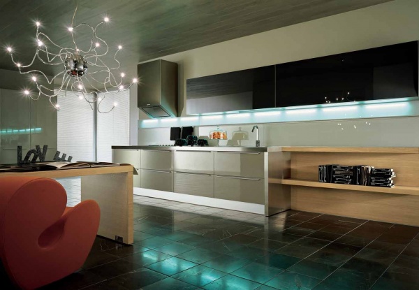 Отделка пола разным материалом. Практичные хозяева плиткой выкладывают рабочую зону у плиты, а в столовой кладут паркет, ламинат. Так вот, примеры оформления современной кухни на фото отчетливо дают понять, что это не просто функционально и практично, но и весьма красиво, оригинально.