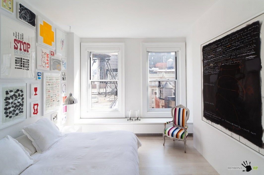 Яркие контрасты и умело расставленные акценты для интересного дизайна спальни