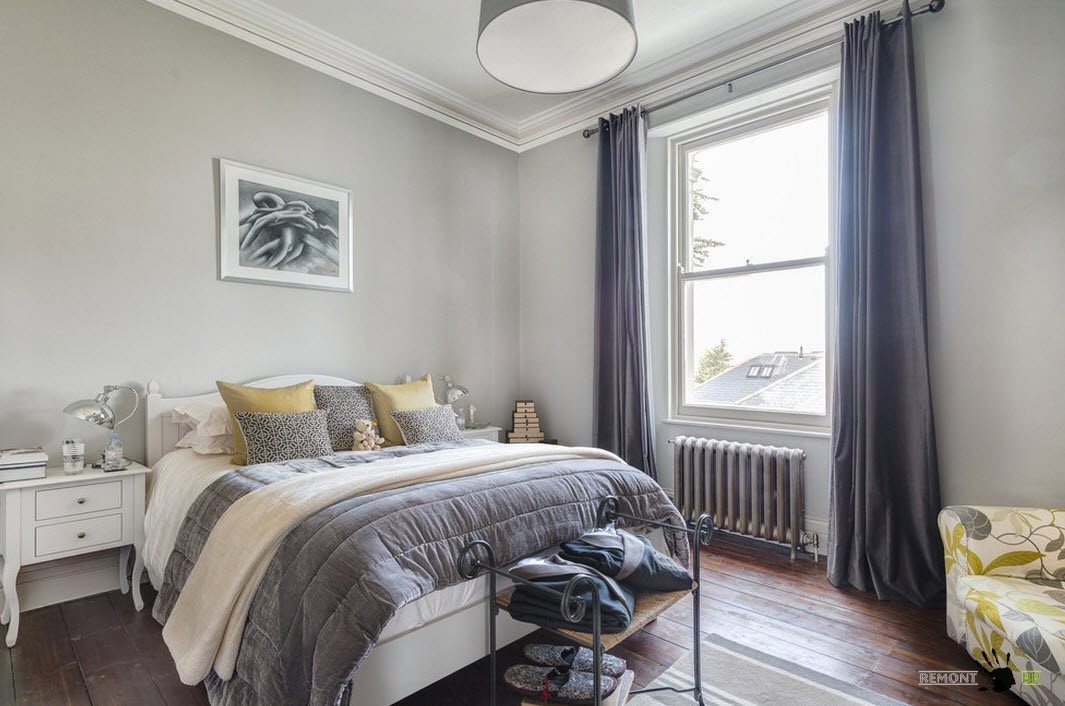 Поэтому, планируя дизайн спальни 12 кв. м. в таком доме лучше остановиться на тёплых светлых оттенках.