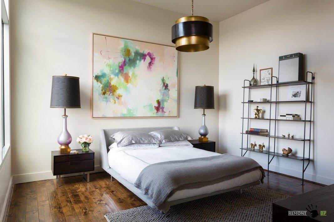 Можно сделать акцент на одном, но крупном элементе. К примеру, им может стать . Она должна быть именно большой, чтобы отвлекать от скромной квадратуры комнаты.