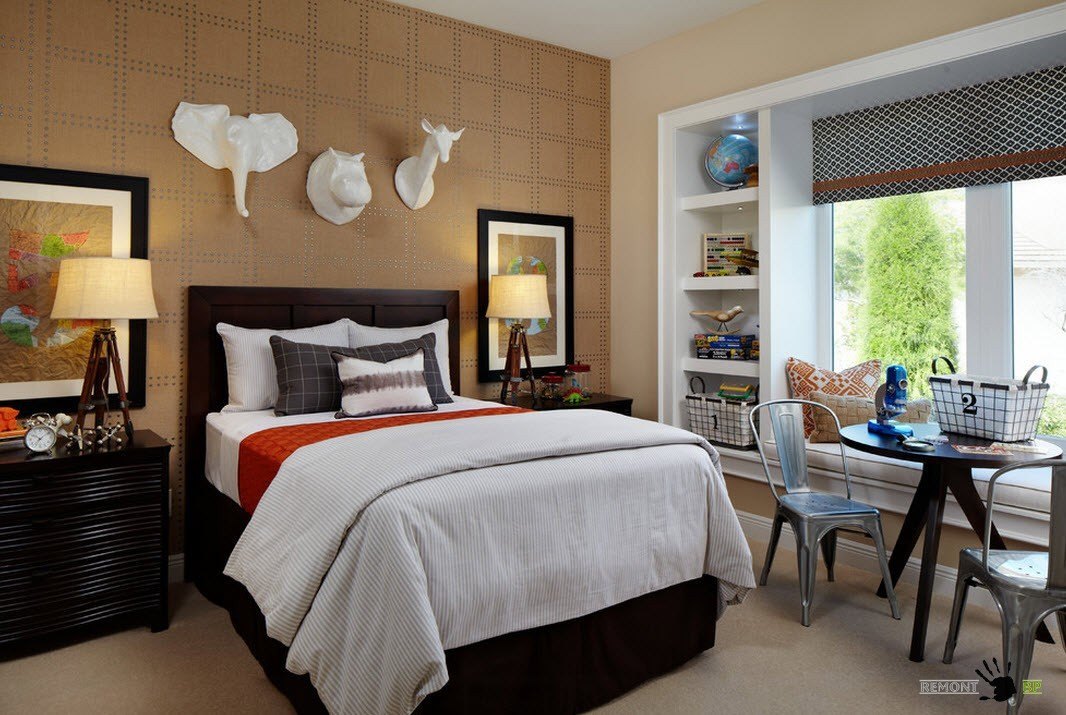 Если в комнате будет место для отдыха одного человека, то достаточно одной кровати среднего размера. Она позволит сэкономить дополнительное место на котором можно будет разместить или рабочее место.