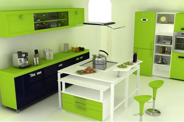 Кухонные фасады в цвете лайма смотрятся в интерьер кухни просто великолепно