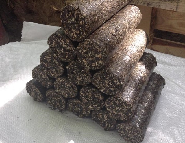 Изготавливается этот вид топлива также методом прессования при высоких температурах и давлении. Связующим веществом для частиц сырья служит натуральный лигнин, который входит в его состав. В результате термического прессования и экструзии получается отличное брикетированное топливо с высокими параметрами плотности. Изделия герметично упаковываются в полиэтиленовые пакеты, что помогает сохранить их сухими длительное время в любых условиях влажности.