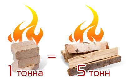 - Объем потребляемого за один отопительный сезон брикетированного топлива в 1,5-2 раза меньше, чем объем используемых за тот же временной промежуток дров.