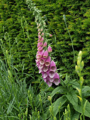 Декоративно цветущее растение, на второй год образует высокий стебель с висящими на нем крупными цветками — колокольчиками, похожими на наперстки. Наперстянка будет хорошо смотреться в цветнике на втором плане, перед ней разместите невысокие цветы, а фоном могут быть кустарники. Наперстянку нетрудно вырастить в своем саду, это растение не требовательно к почве, может развиваться как на солнечном месте, так и в полутени. У Наперстянки есть сорта с белыми, желтыми, розовыми и красными цветками — колокольчиками с темными или светлыми пятнышками внутри.