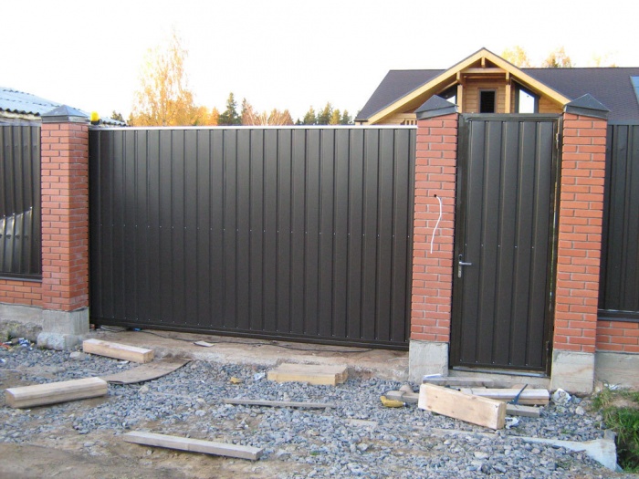 Выберите место и тщательно произведите замеры. Определитесь со столбами. Они могут быть также металлические, а могут быть из кирпича. Если будет использоваться кирпич, то важное значение имеет его толщина.