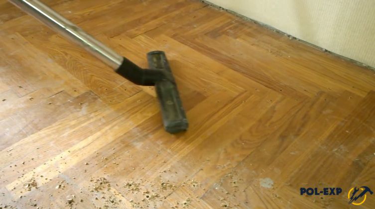 - Пропылесосьте паркет, используя насадку с мягким ворсом.