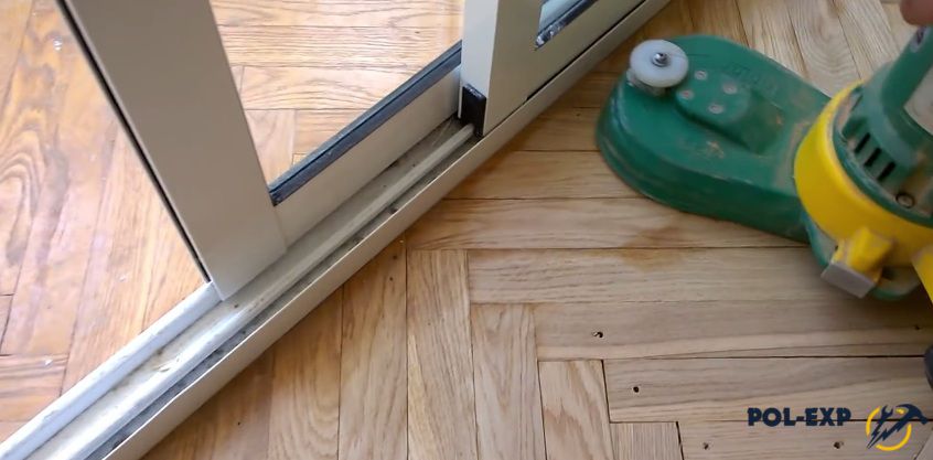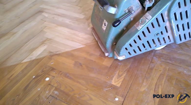 Совет. Машинку нужно вести очень ровно, с одинаковым нажимом, не задерживаясь на одном месте. Если сильно надавить, барабан сделает выемку в паркете, и тогда все придется полностью менять.