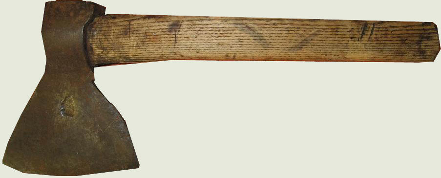 Однако немцы, осматривая повозку, на которой ехал Овчаренко, не обратили внимание на находящийся в ней топор.Малый сапёрный топор образца 1889 года. Длина топорища — 445 мм. Высота топора — 229 мм. Ширина лезвия — 177,8 мм. …»