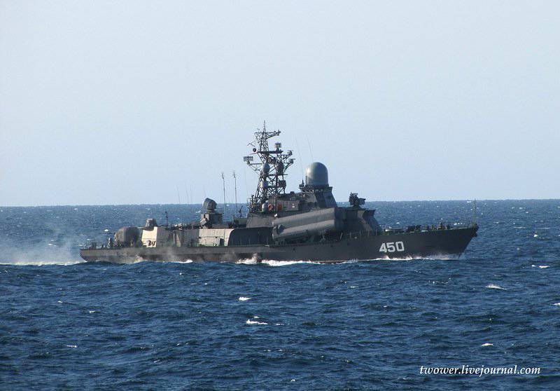 Всю ночь и утро 15 сентября корабли шли к месту проведения завершающего этапа двусторонних учений между объединениями флота, которое находилось в 154 милях от Петропавловска-Камчатского. Корабли сопровождения.Малый ракетный корабль пр.12341 «Разлив»