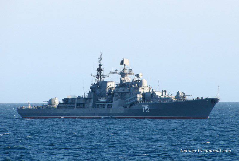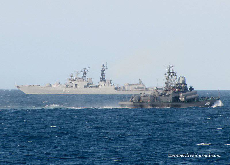 7. Спереди МРК «Разлив», на втором плане — большой противолодочный корабль пр.1155 «Адмирал Виноградов»