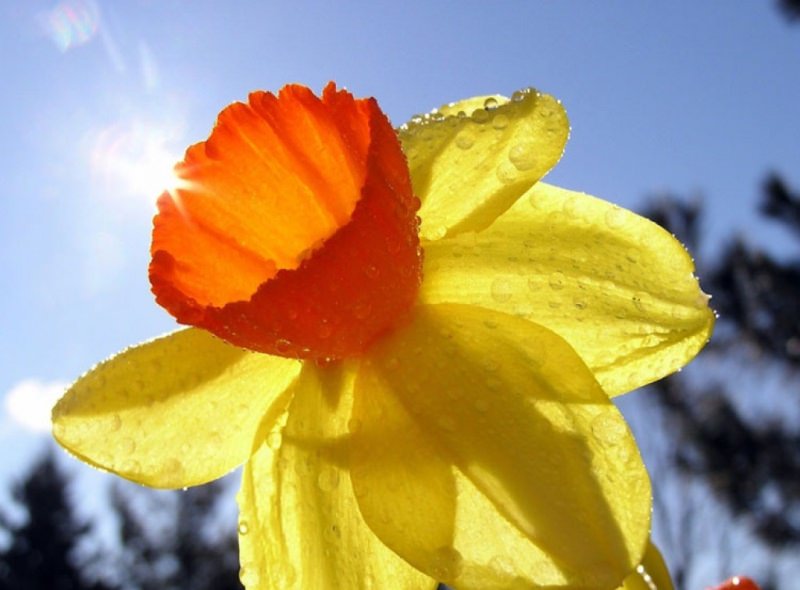 Нарциссы с желтыми «ле­пестками» и оранжево-красной корон­кой.