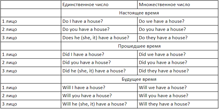 2. Глагол to have соответствует русскому глаголу иметь, обладать, т.е. глагол переводится, а значит, имеет значение. Для того, чтобы выразить вопросительную и отрицательную форму, используется .